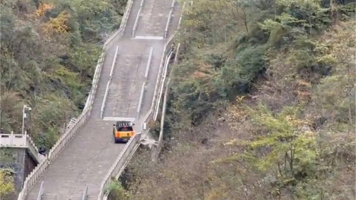 “Tangga Surgawi” terkenal sebagai salah satu jalur paling ekstrem di China, dengan total 999 anak tangga yang membentang sepanjang 300 meter dan memiliki penurunan vertikal hingga 150 meter menuju Gua Tianmen. Jalur ini sering dicoba oleh para petualang, namun tidak jarang menimbulkan ancaman bagi pengemudi jika tidak berhati-hati.